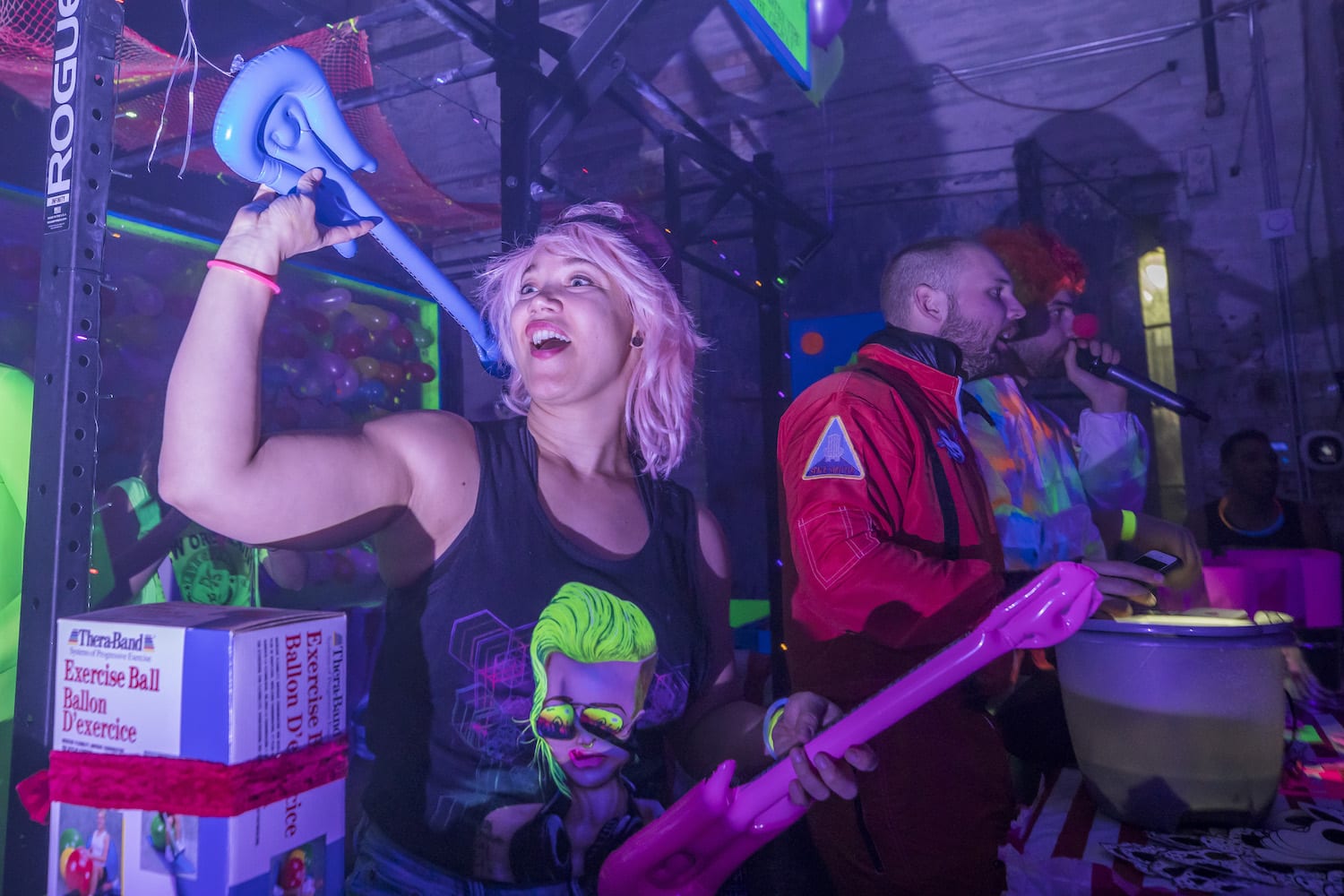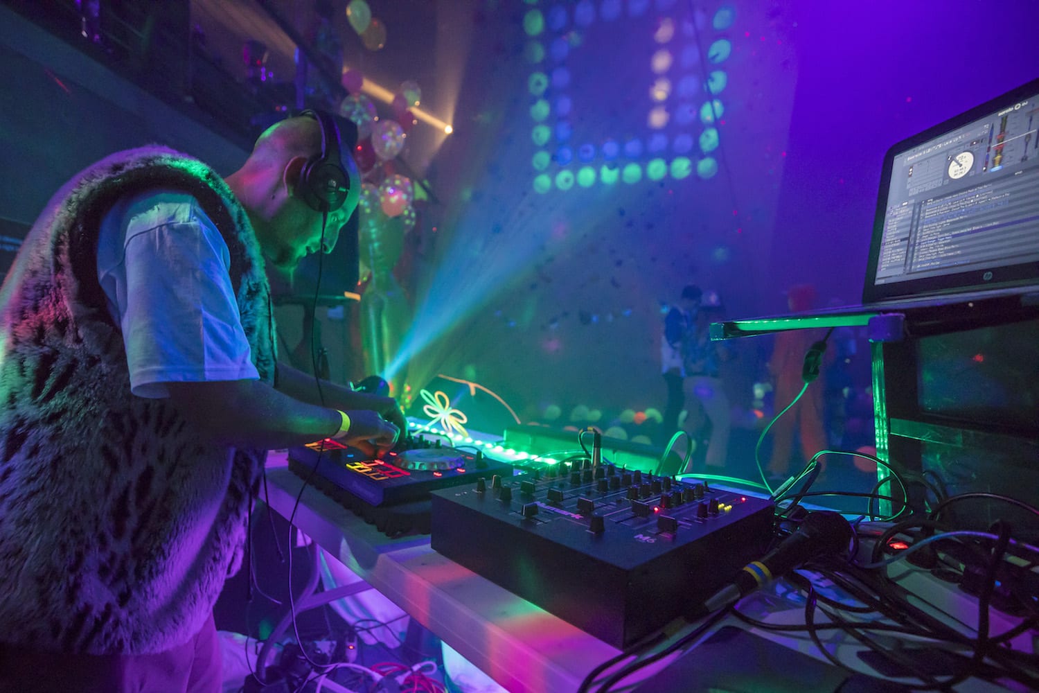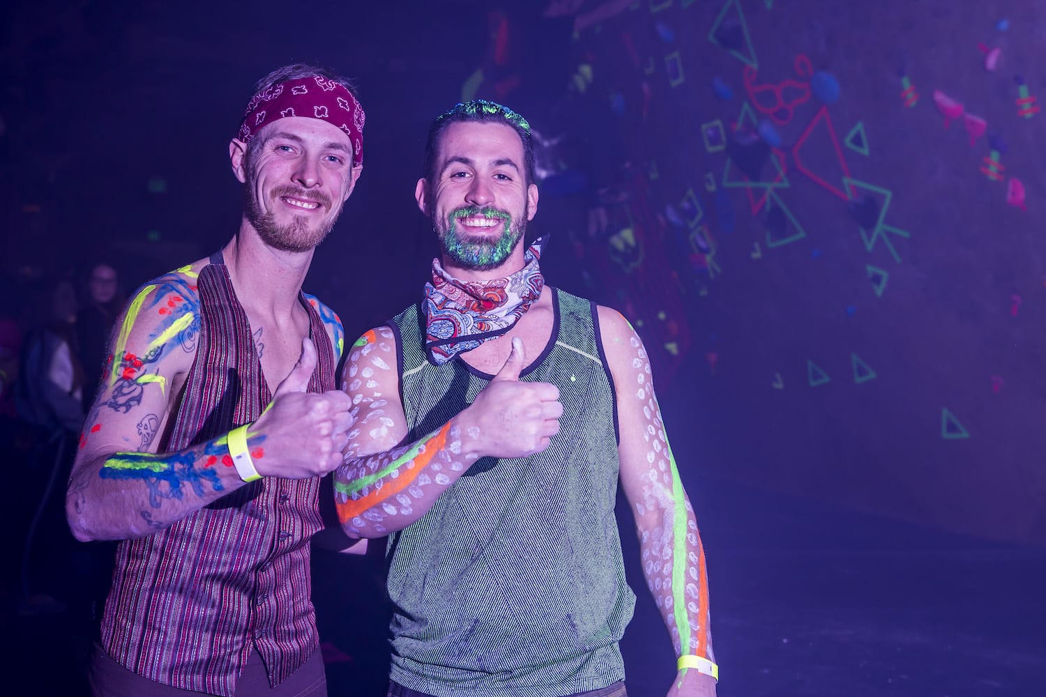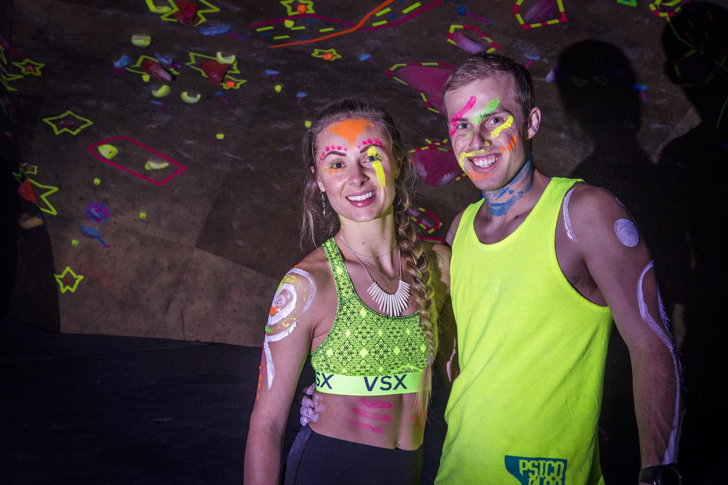 As my eyes adjusted to the bright dancing colors against the cosmic darkness, into focus came a reality of which I had only dreamed – alien creatures had landed on Earth! They stirred wildly everywhere I turned; it seemed as if they were coming from the walls themselves! Their faces, their eyes, their bodies, painted for war and echoing the neon liveliness of their Mother Ship.