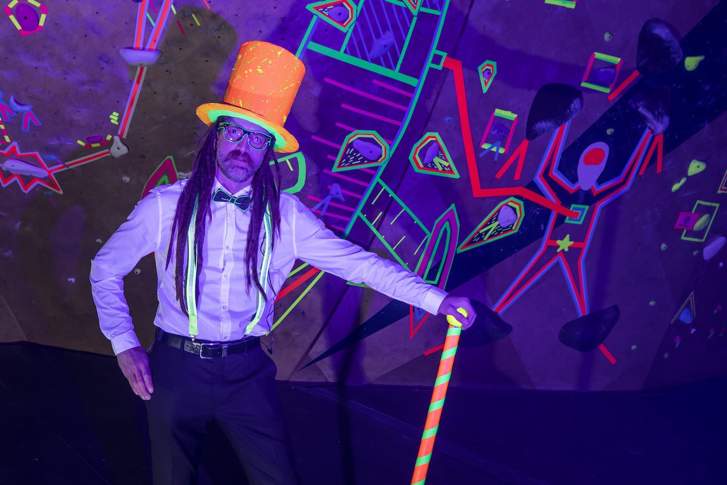 “Big Top’s Cosmic Boulder Bash had landed in Ogden a few hours before I happened upon the damage, but the fire was still burning like a comet had collided with the sun. Except, the sun was dark, the moon was dark, the stars were dark! The only light came from Big Top’s – glowing neon colors, the like of which I had never seen, radiated through the wreckage. Bravely, I wandered through the debris and into the remnants of the iconic Ogden structure that once was The Front Climbing Club.
