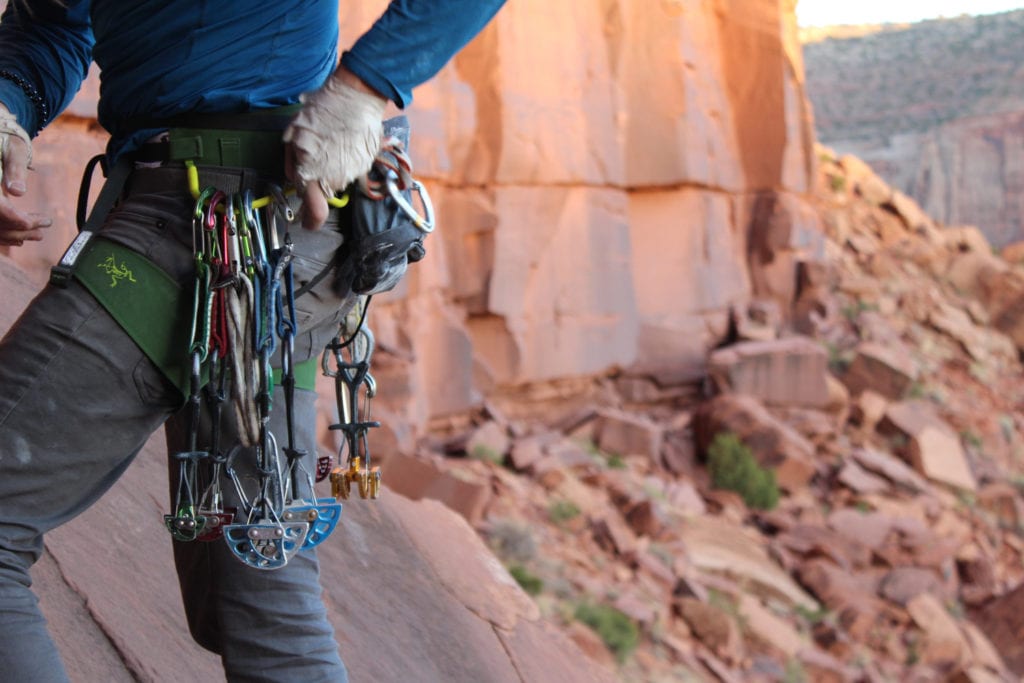What really is trad and where did these cams come from? Well, the original camming device was called a “Friend” developed by Ray Jardine in 1978. Eventually, they became a major production for the United Kingdom climbing brand, Wild Country. The revolution of the camming units blew open free climbing as we know it. Previously climbers used pitons, hexes, and nuts to protect upward movement. They were difficult and took time to place. A cam, on the other hand, can be placed in about the same amount of time it takes to clip a bolt. Plus, in parallel cracks like Indian Creek, it makes it safe to climb.