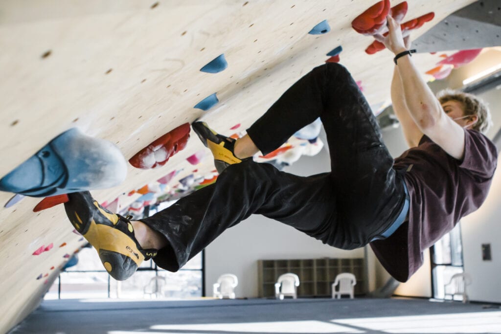 Climbing this way helps you reduce excessively repositioning your hand on a hold, and it prevents excessive “shopping” for holds, frantically grabbing every hold in every way instead of looking ahead and deciding how best to grab it in the first place.