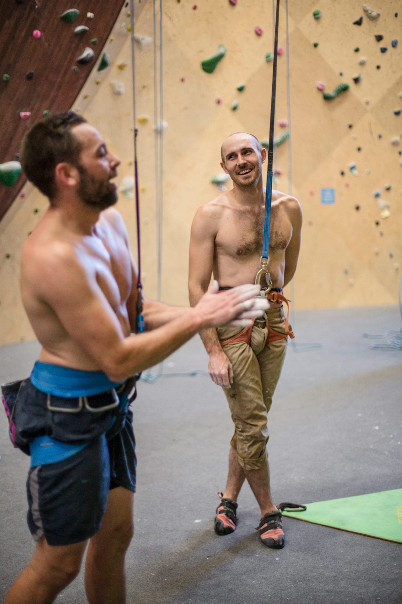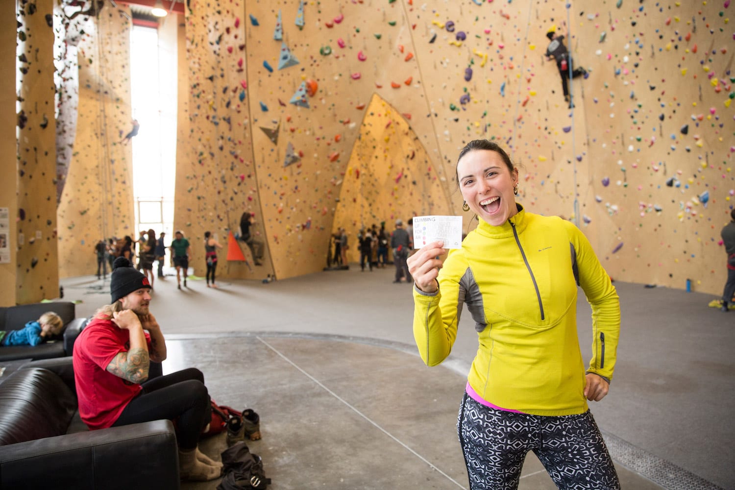 The drama continued to unfold as our female winner was announced by a 1-route margin, who took her place next to our male defender – a place she is very familiar with because the two have been married for 10 years (we have no idea how long they’ve actually been married, but they are actually married)!