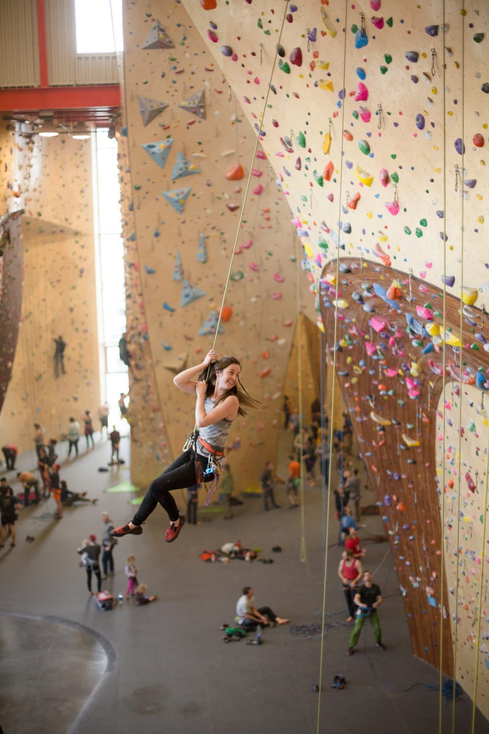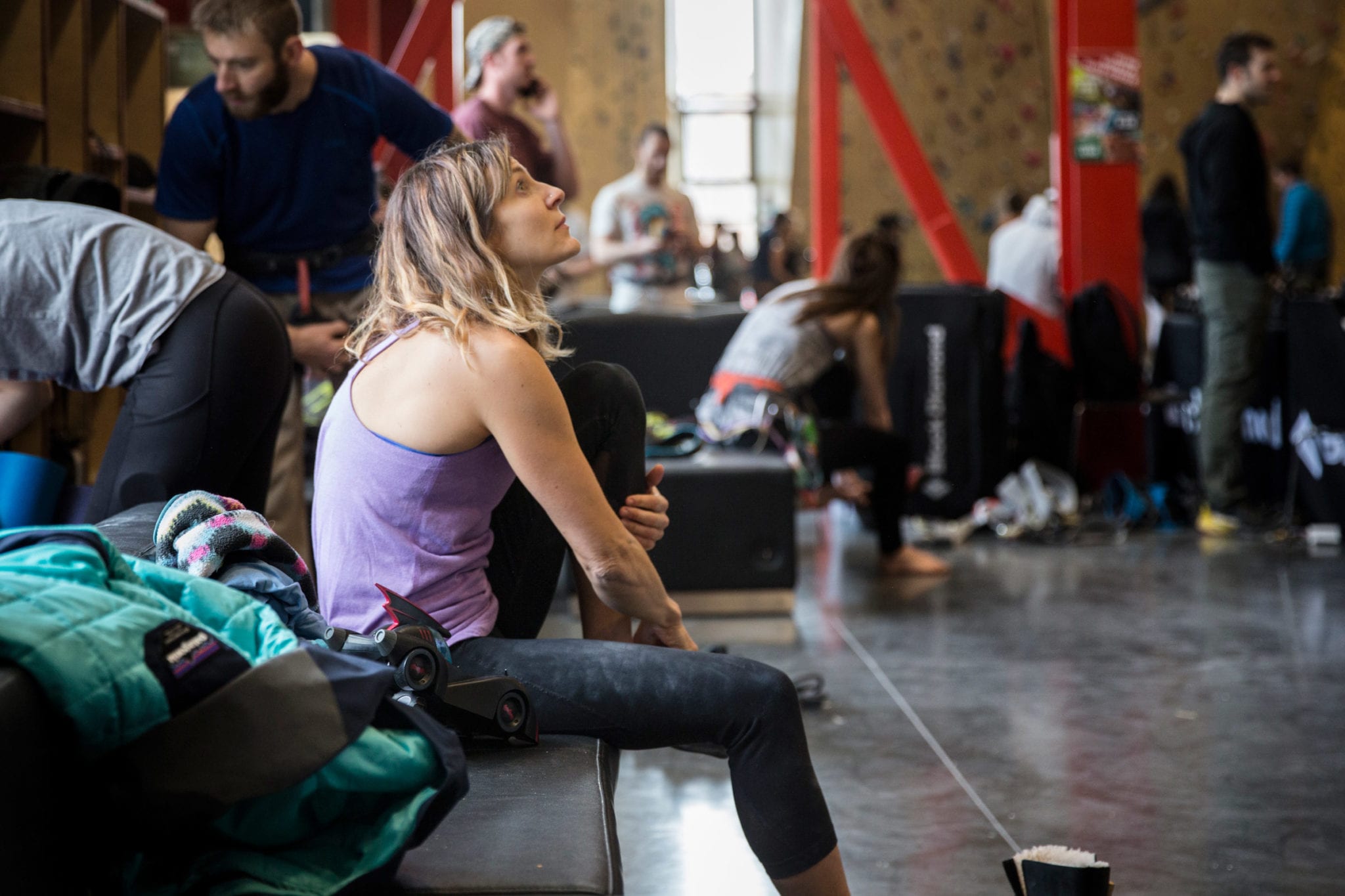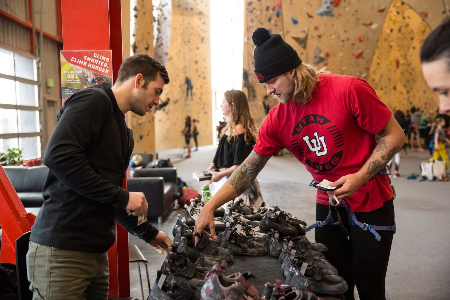 The doors of The Front Climbing Club opened into a colder-than-it-has-been-but-warmer-than-any-winter-ever morning to awaiting athletes, and in walked Up For Air’s first dual athlete – Mindy Campbell (pictured in purple). Mindy battled the walls for hours before heading off to RUFA for more pain and the only gain being her contribution to Utah’s air quality nightmare.