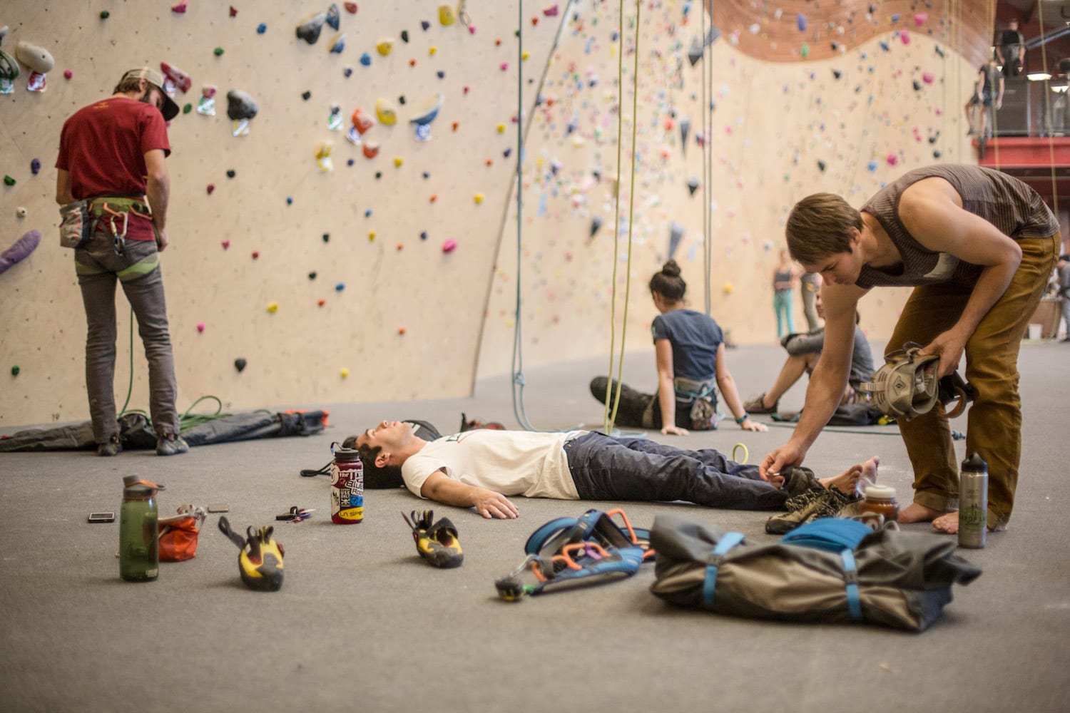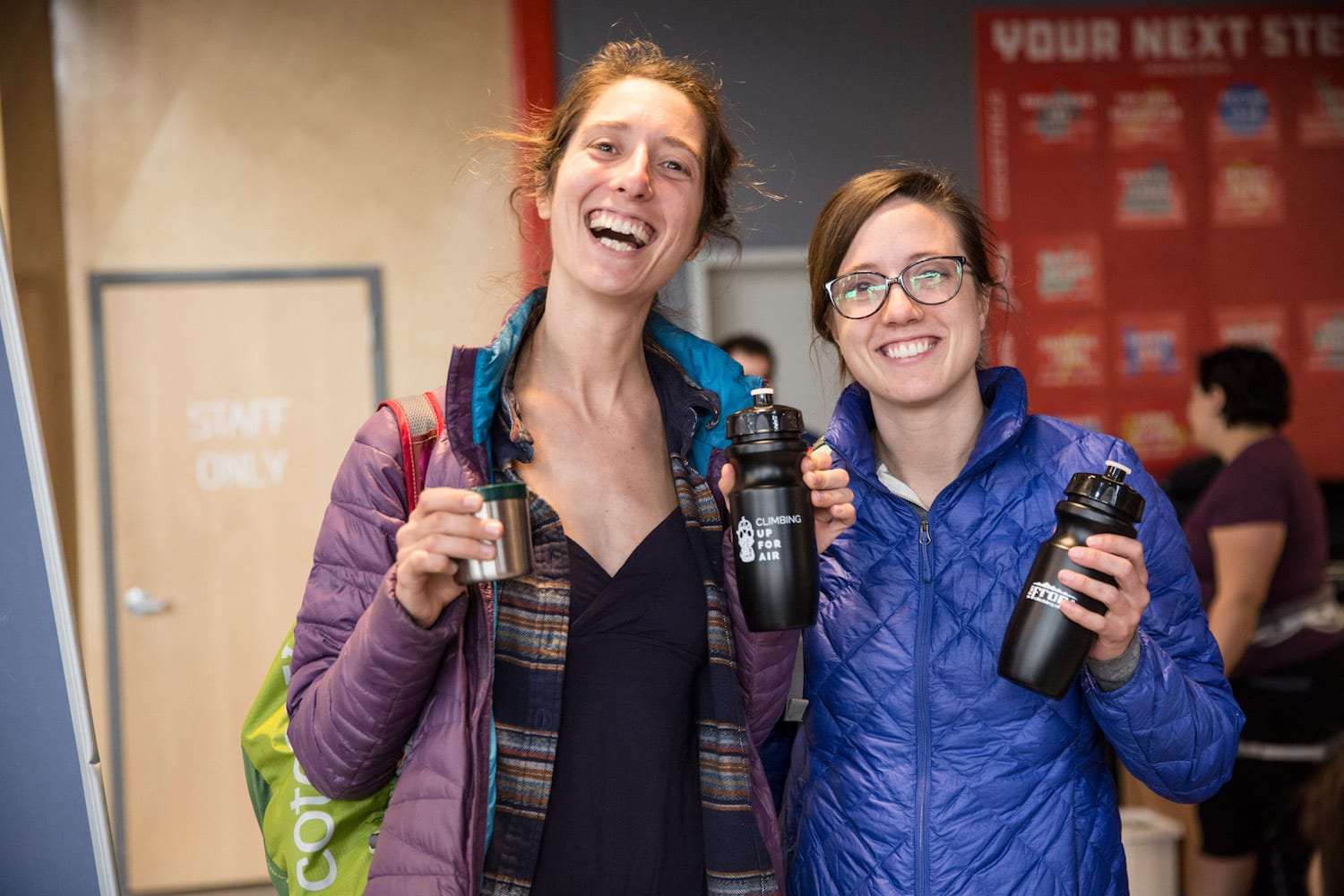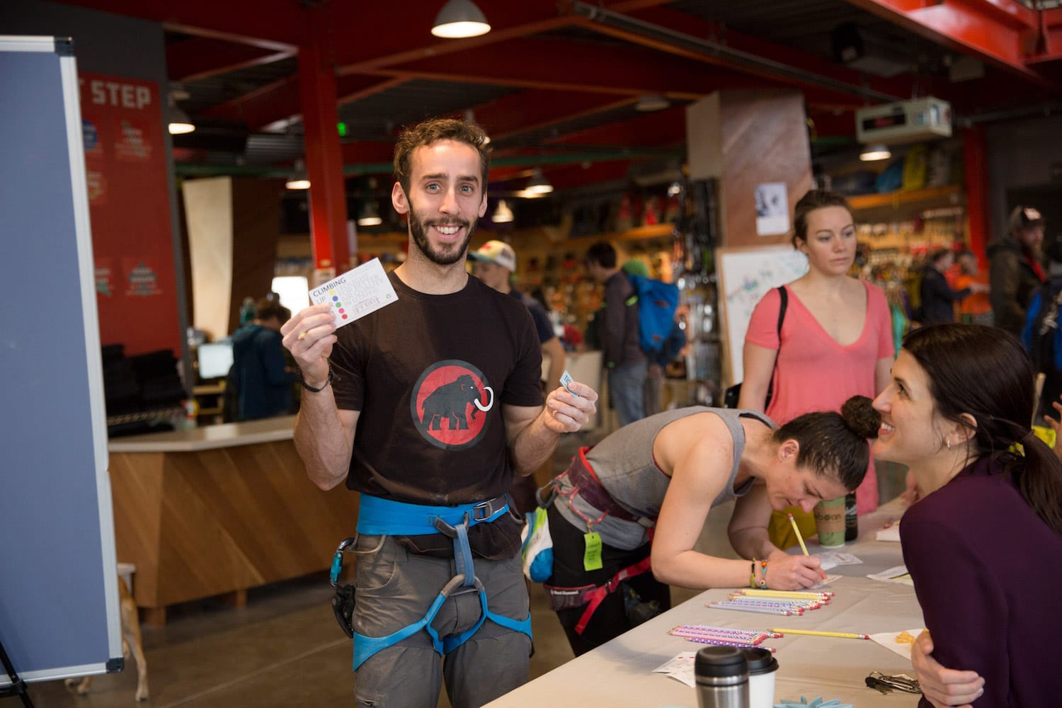 CUFA participants flooded into the gym throughout the day and were welcome to show up anytime during the 8-hour event to climb as many routes as possible. But, the ultimate winners arrived promptly at 10AM, battling it out up and down and up and down until the moment the clock struck 6. Four strapping men were in nothing short of a brutal death match for the win. Dripping sweat and stumbling their cards to the score table, these four put up 402 routes between them!! Alas, there could be only one winner with Stephen Lindsey maintaining his lead over Seth Reelitz. The world’s first CUFA champion walked proudly to the podium with 125 routes under him and a new 70-meter Beal rope held proudly above him in victory.