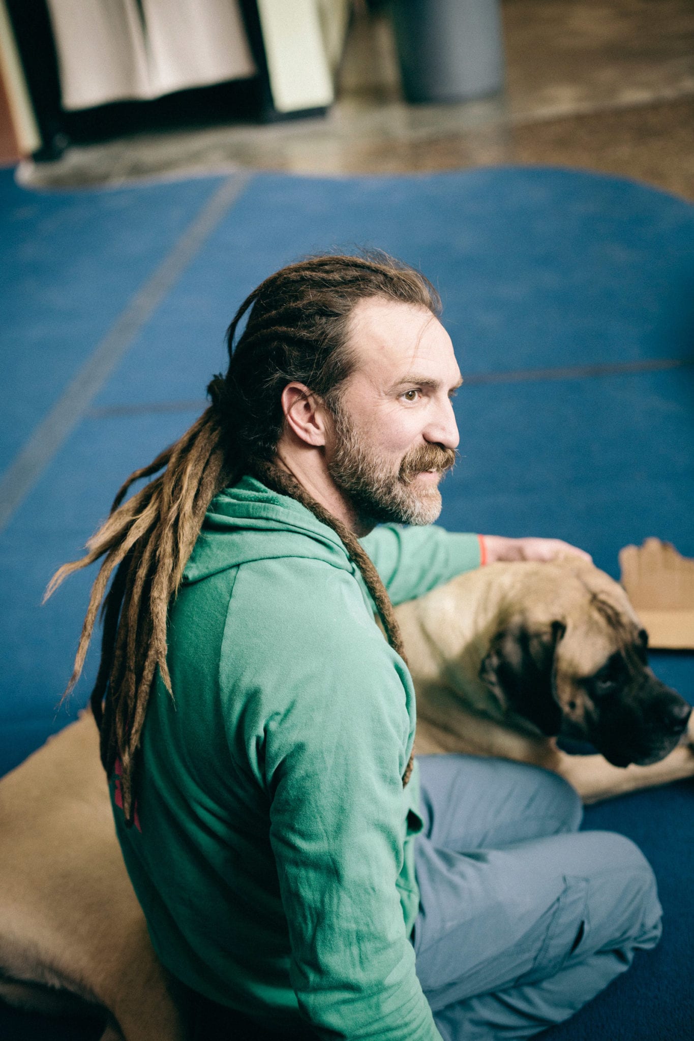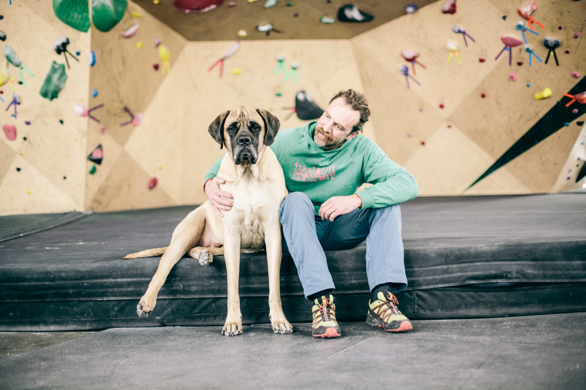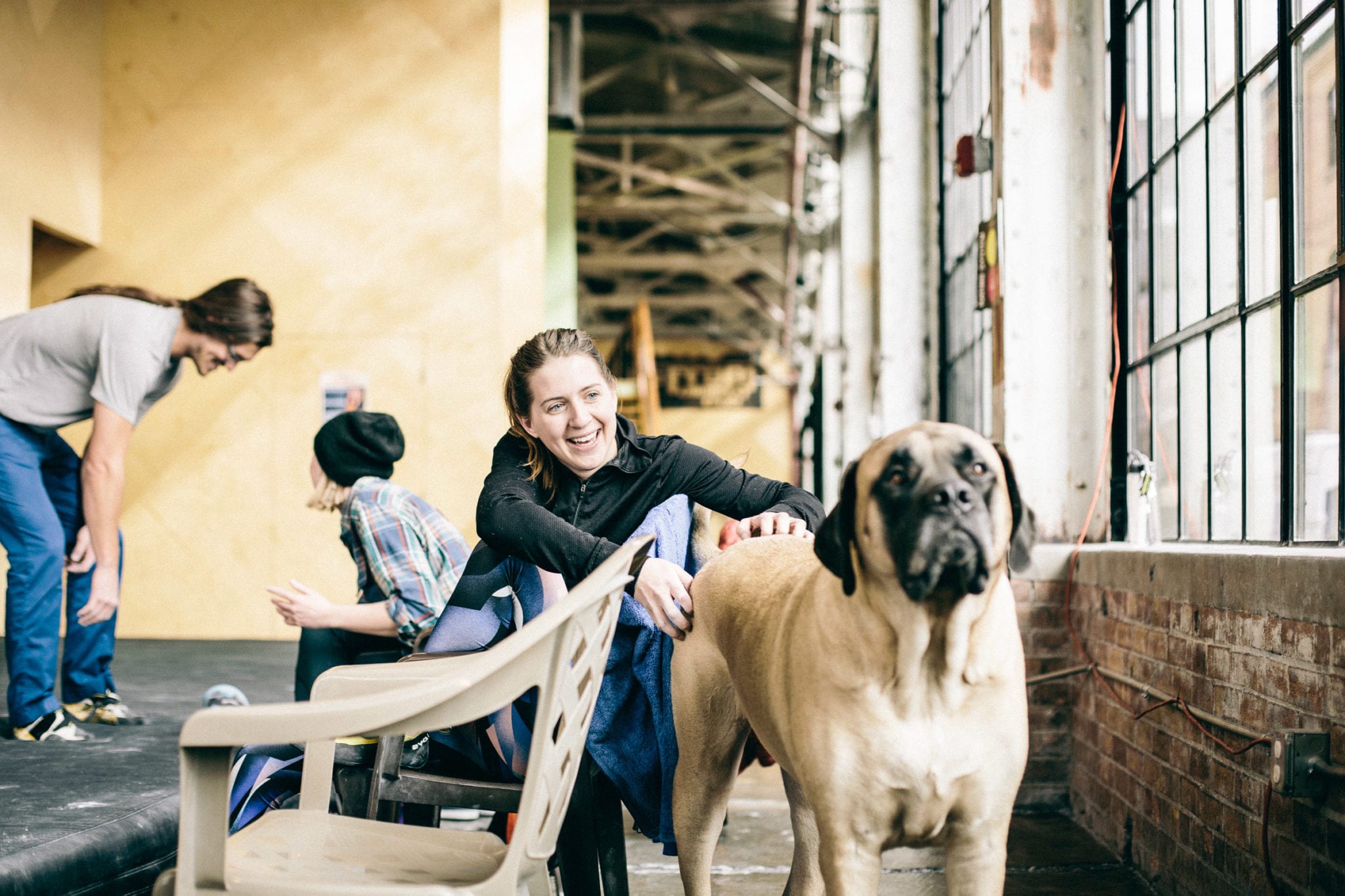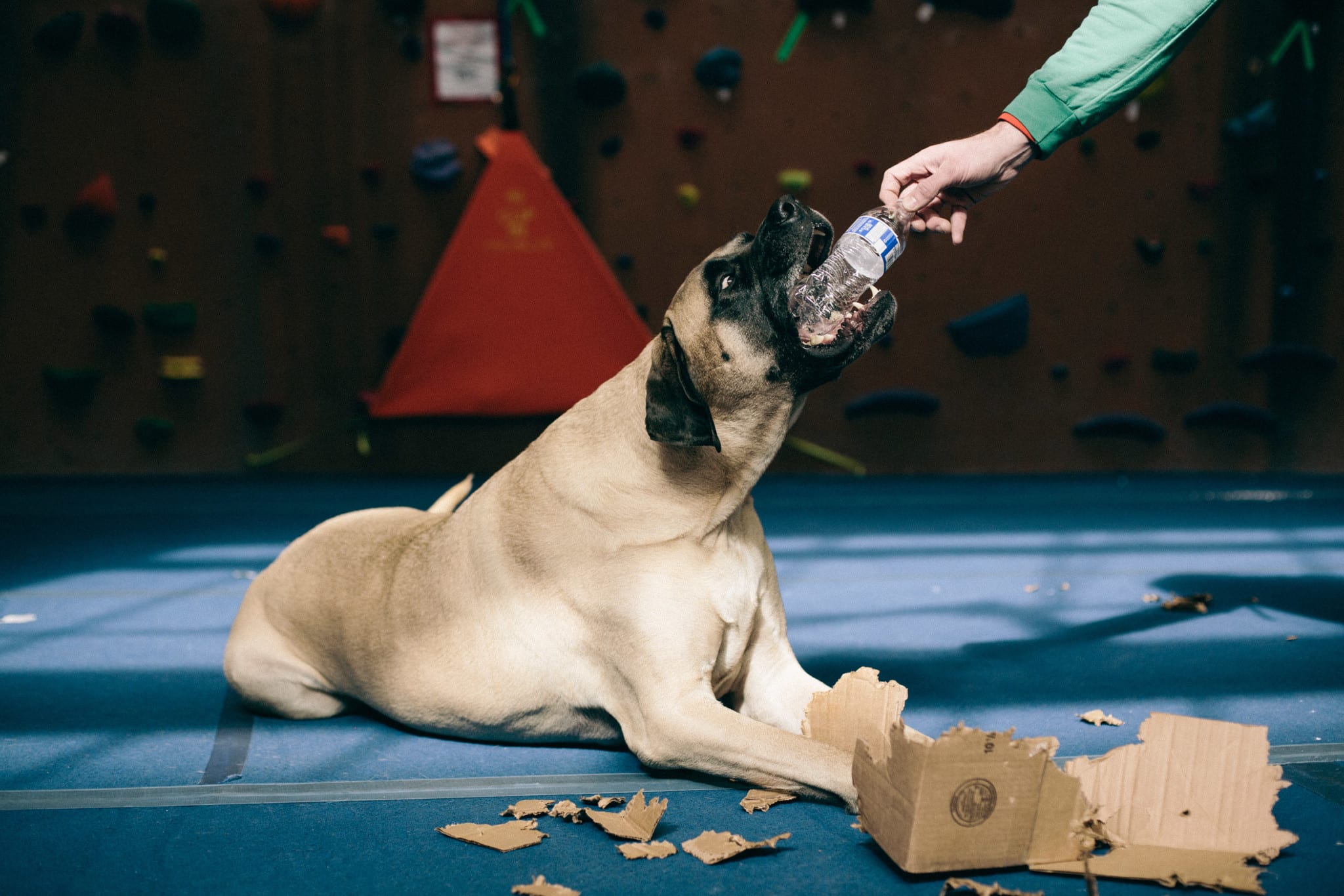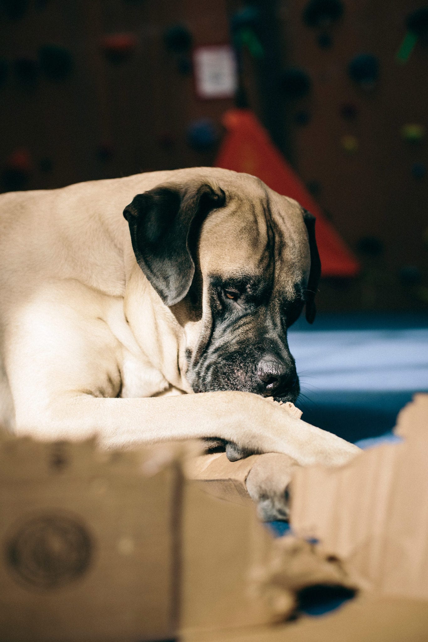 When I’m not out adventuring, I’m at The Front. The climbing gym is the best place in the world. I hate getting out of bed so early, but I know all my friends are there waiting for me. Did I mention that I like people? I have over a billion friends that love me. You can even check my Insta account for proof. I love them too. I lay at the end of the bouldering wall and wait for the heavy petting and kisses to come. I will come sit by you while you’re climbing, sometimes crushing your chalk bag or shoes. You may have to wait for my attention if dad gives me a plastic water bottle or cardboard box. Those are my two most favorite toys.