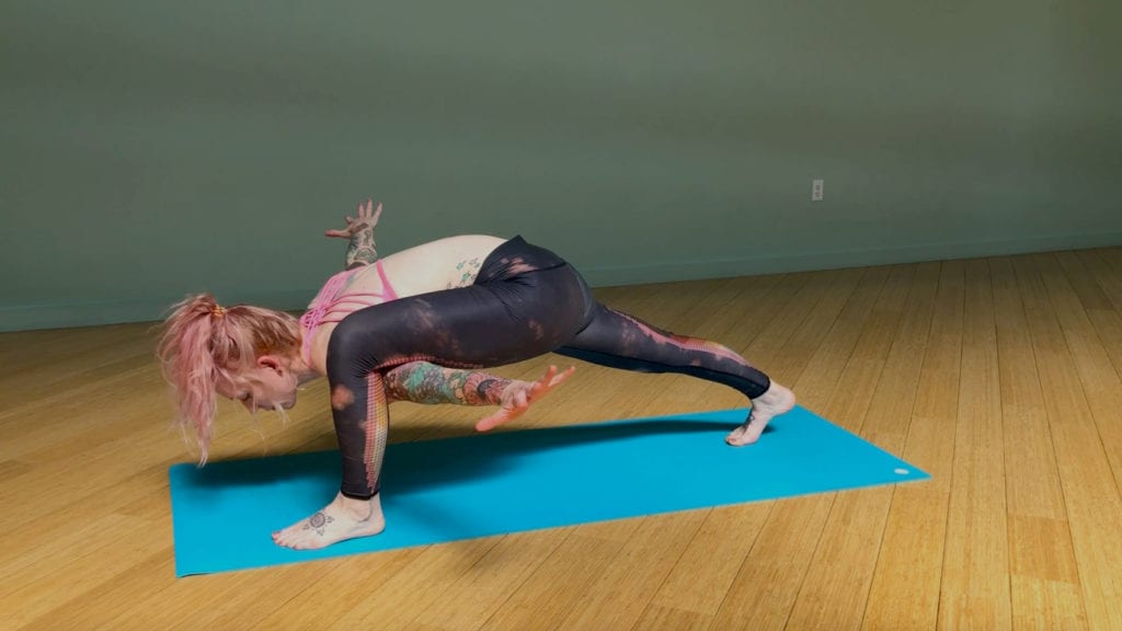 Vinyasa. Oh, how we love you! You’re fun to say out loud (go ahead… rhymes with Mufasa) and you’re fun to do. And… sometimes you’re challenging… sometimes you’re hot and sweaty and REALLY challenging… sometimes you make our brains work: sequencing, adding postures in, taking postures out, finding your rhythm, moving intuitively… And, sometimes (here at The Front YogaLoft at least) you may wonder, “is this even a real posture?” Ha! Well, it is now! We don’t shy away from creativity ‘round here.